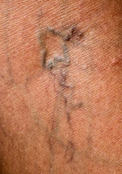 These are actually small blood vessels that have ruptured. They can occur anywhere on the body but are most commonly found on the face and legs.
